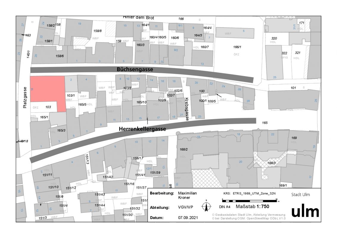 Die Büchsengasse muss unbedingt ebenfalls als Fußgängerzone ausgewiesen werden. Schon heute „verfahren“ sich etliche Autofahrer vor allem samstags bei Sperrung der Herrenkellergasse in der Büchsengasse und fahren dann direkt in die Fußgängerzone Platzgasse ein. Hierbei handelt es sich hauptsächlich um auswärtige „Parkplatzsuchende“ und um Personen, die hartnäckig die Sperrung der Herrenkellergasse umfahren möchten.