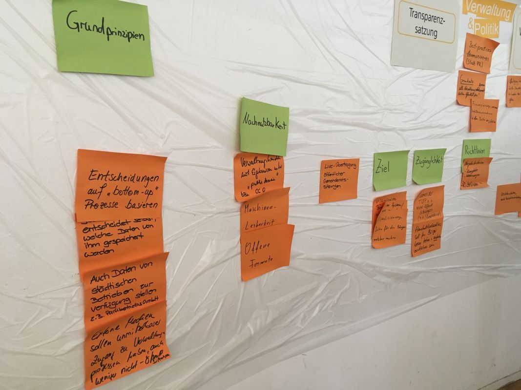 Entscheidungen auf Bottom-up-Prozesse basieren, Entscheidungsfreiheit welche Daten gespeichert werden, Externe Medien sollen unmittelbaren Zugang zu Verwaltungsprozessen haben, auch Daten von städtischen Betrieben zur Verfügung stellen, alle Verwaltungsdokumente sollten öffentlich sein, "public money- public content"
